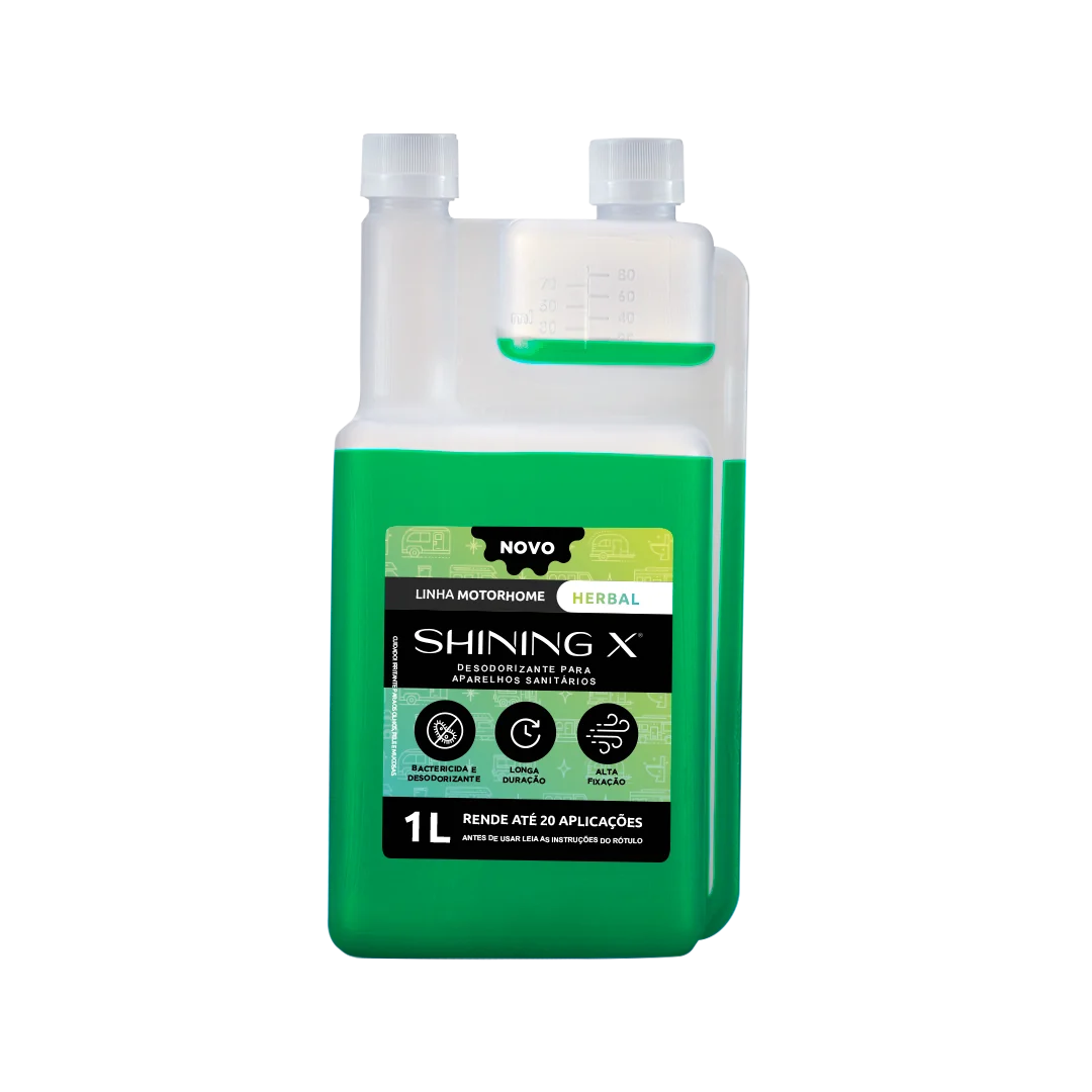 Desinfetante Desodorizador SHINING X Líquido: é um desinfetante bactericida aromatizado, composto por Quaternário de amônio de 5° geração, desenvolvido para eliminar bactérias e maus odores característicos de vasos sanitários. Produto de fácil manuseio. O produto apresenta eficiência comprovada contra Staphylococcus Aureus e Salmonella Choleraesuis.